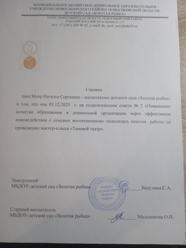 Трансляция опыта на педсовете №2 "Теневой театр"