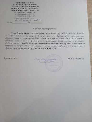 "Эффективные способы привлечения семей воспитанников старшего дошкольного возраста к досуговой деятельности" доклад на заседании районного методического объединения музыкальных руководителей